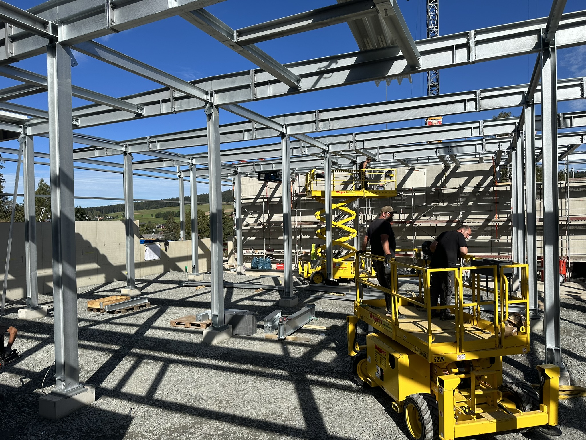 Wir realisieren Stahlbauten in den verschiedensten Bereichen, vom Hallenbau für Lagerung und Produktion über Vordachkonstruktionen, bis hin zu Treppenanlagen und Balkonkonstruktionen im Wohnbaubereich.