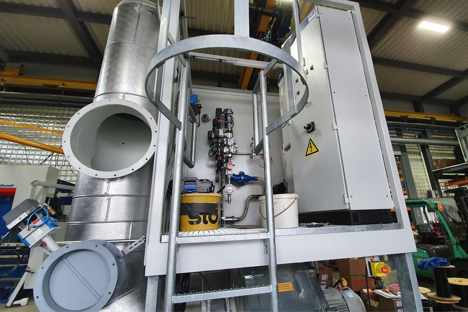 Die Anlage wird zur Abluftreinigung mittels thermisch regenerativer Nachverbrennung in Industrieanlagen eingesetzt. Sie ist autark konstruiert und wird vor Ort nur noch am Stromnetz angeschlossen.