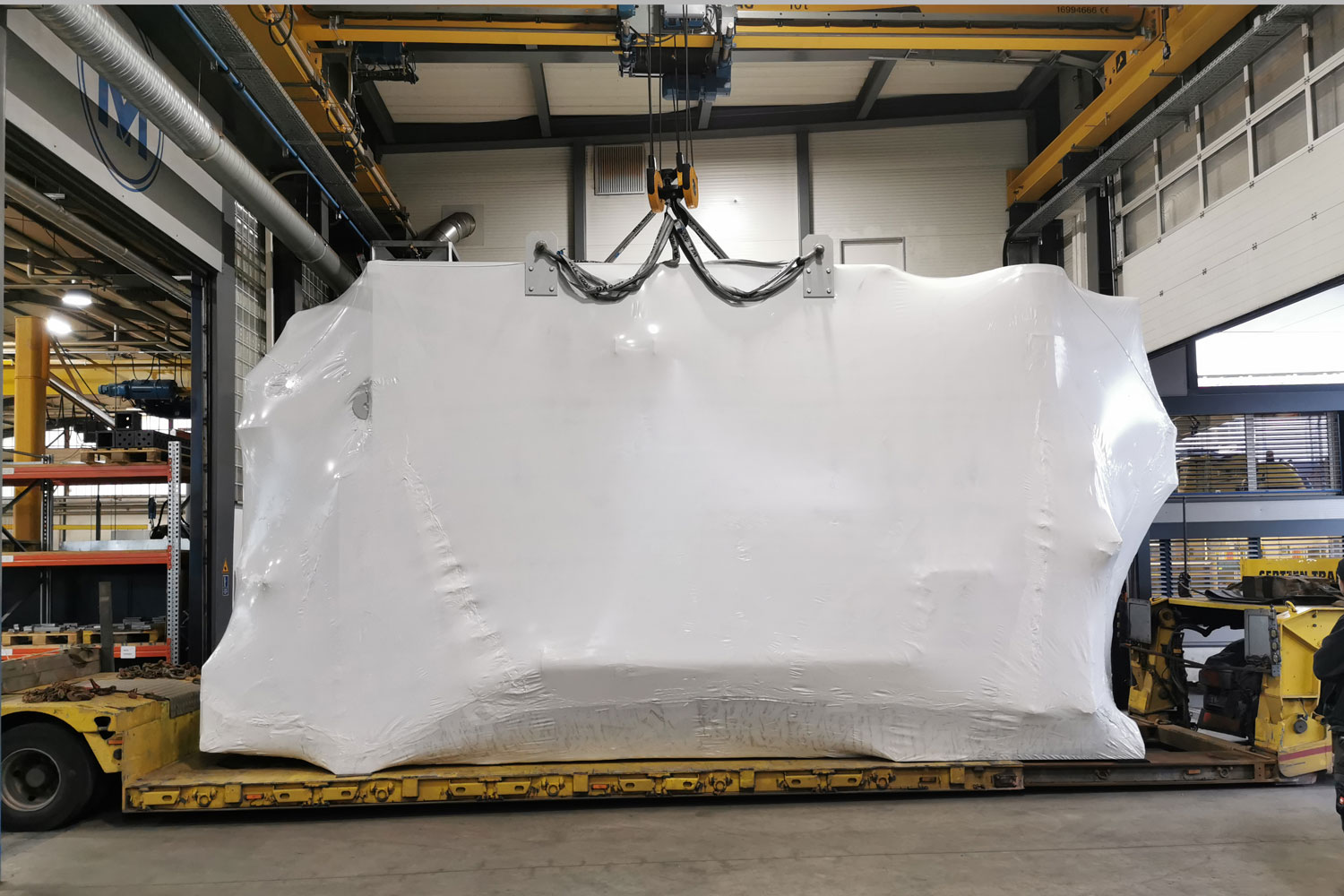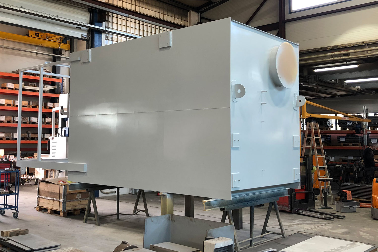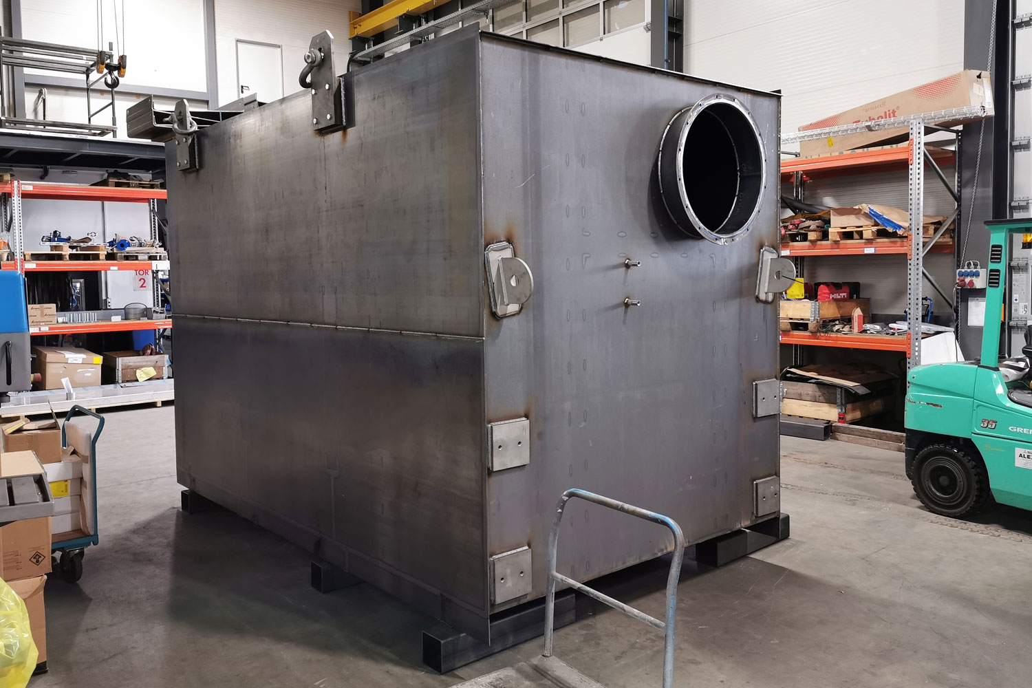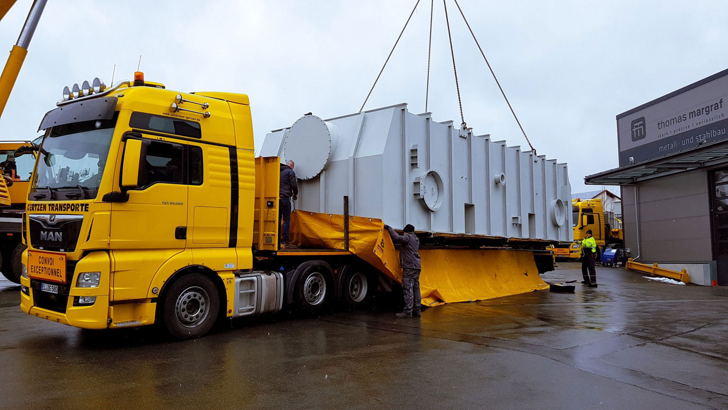 Nach der Anlage für Polen durften wir wieder eine Industrieabluft-Verbrennungsanlage fertigen, die unser Werksgelände in Richtung Hamburger Hafen zur Schiffsverladung verlassen hat, um per Seefracht zum Bestimmungsort in China verschifft zu werden.