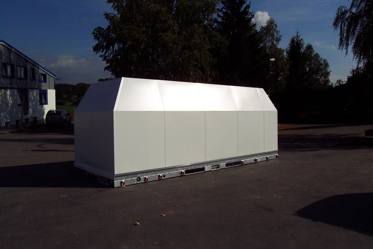 Fertigung aus feuerverzinktem Stahl incl. Dach, Paneelwand und Fenster.