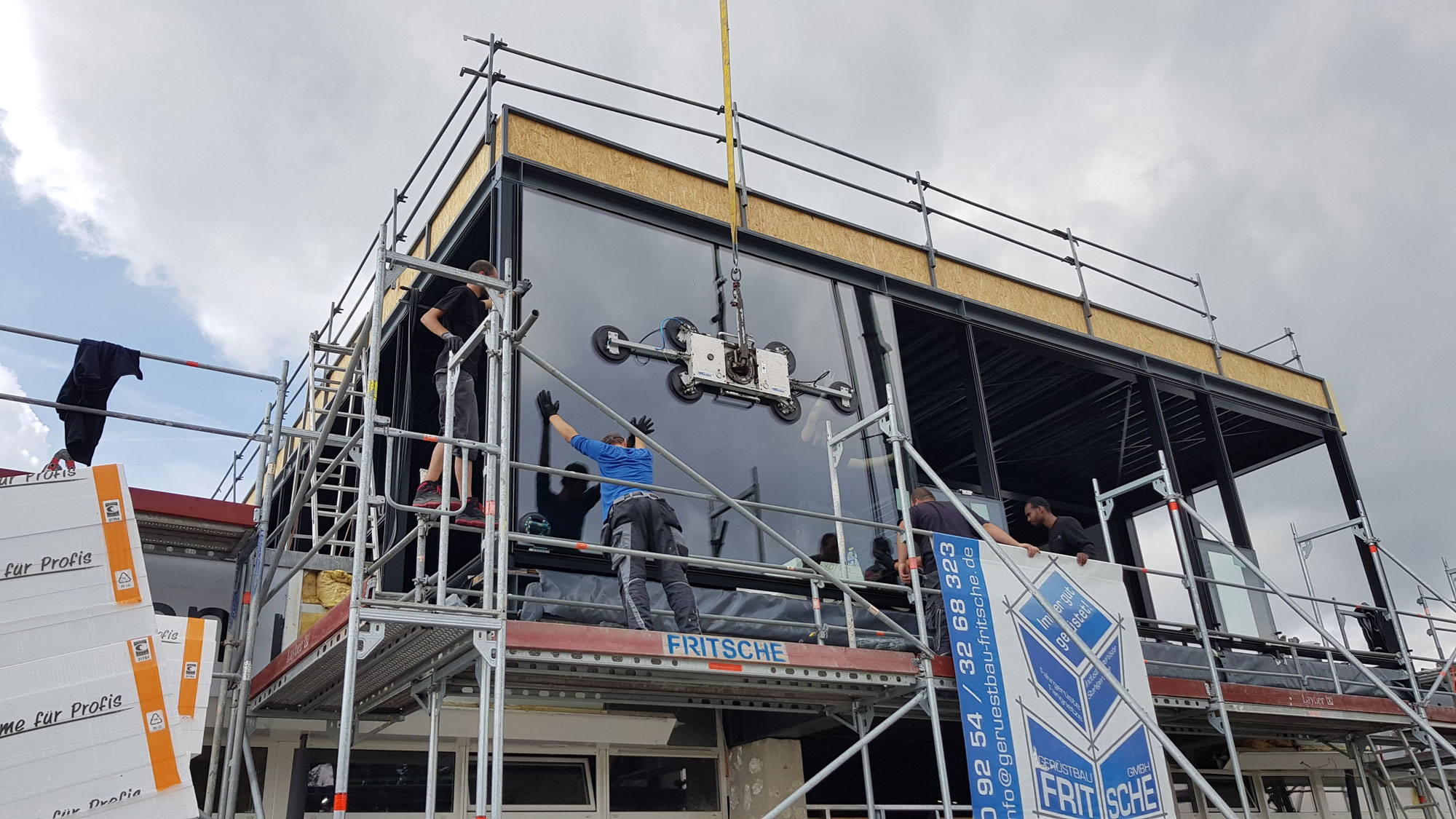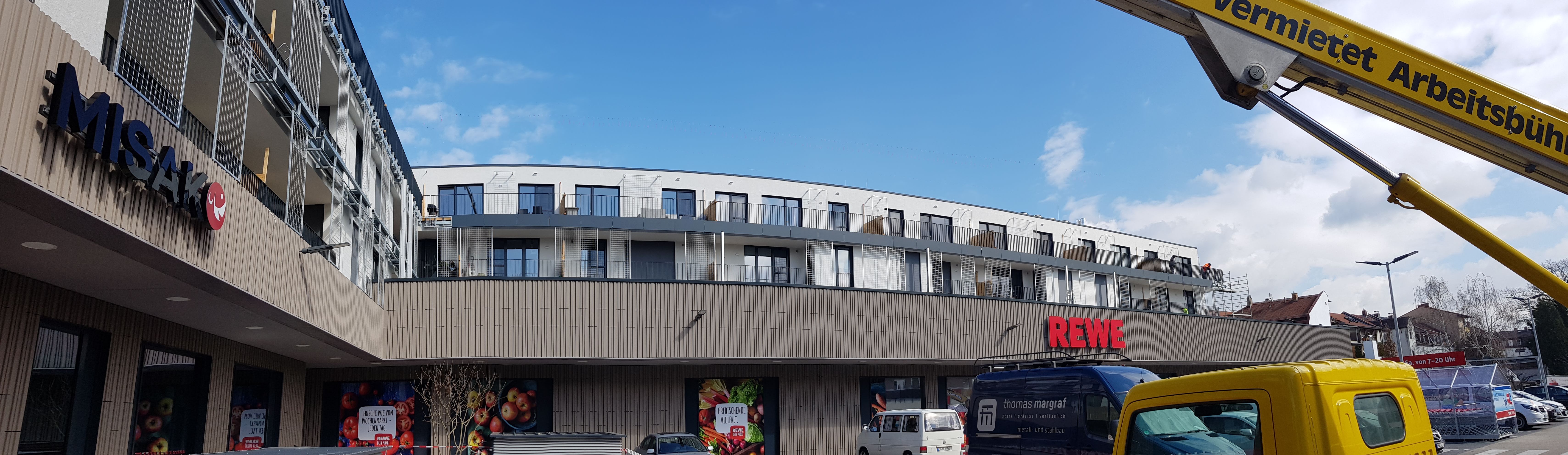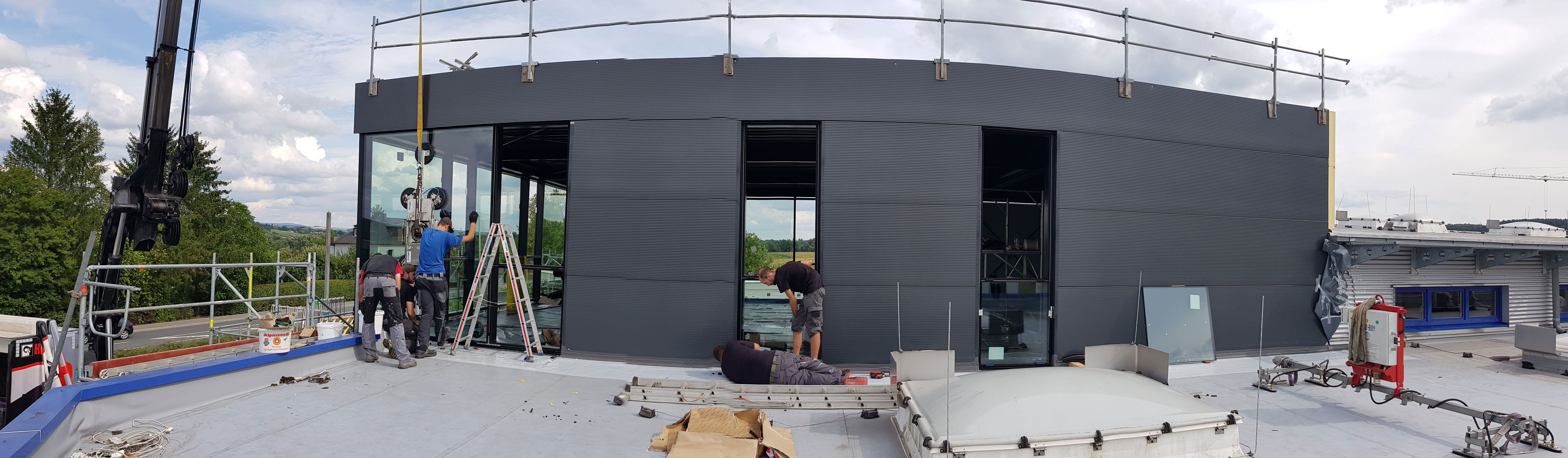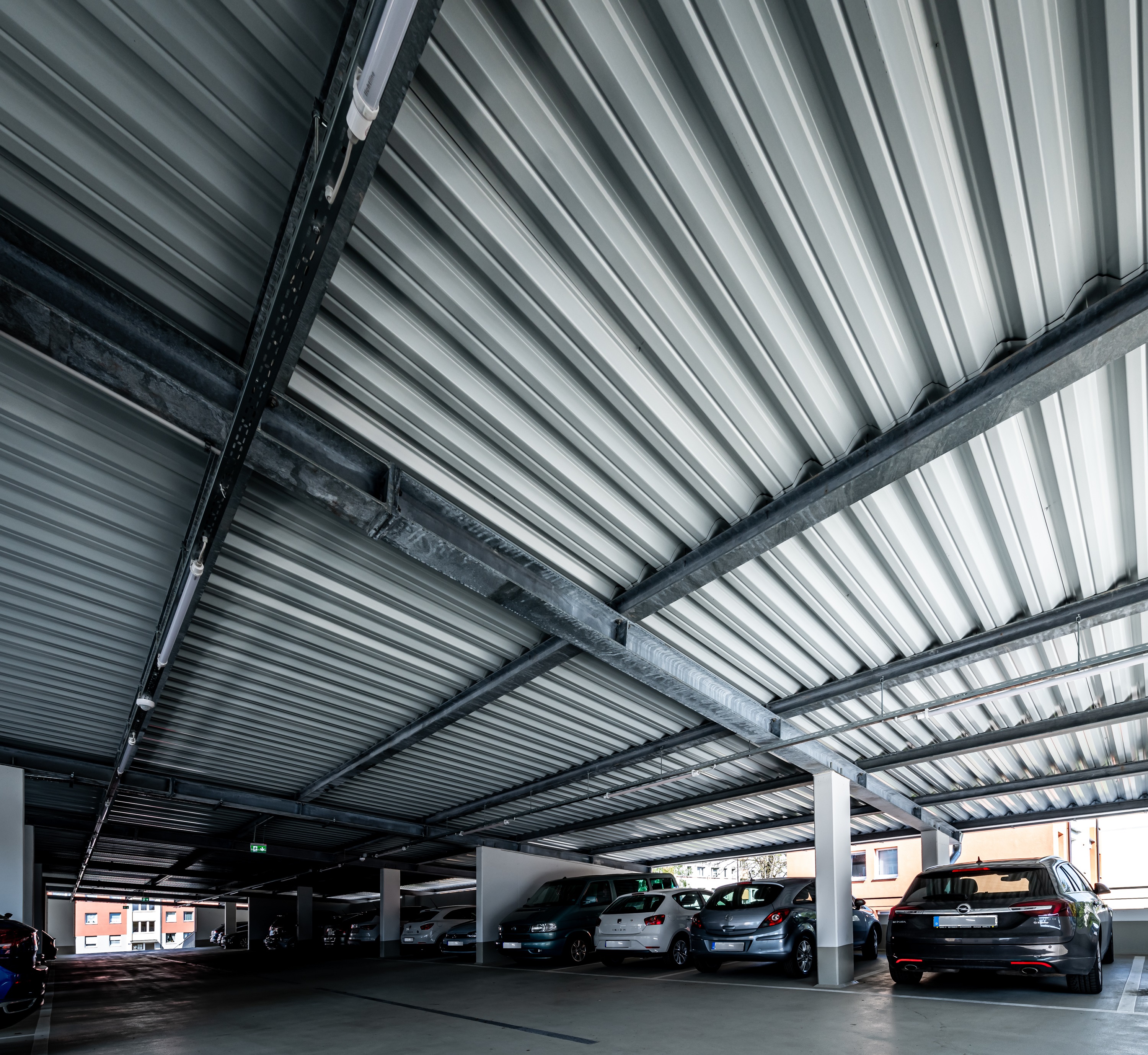 Die Gebäudefassaden wurden von uns mit beschichteten Alu Lamellen zur optischen Aufwertung der Gebäude verkleidet. Die dafür benötigte Stahlunterkonstruktion wurde von uns nach statischen Erfordernissen aus Stahlhohlprofilen gefertigt und montiert.