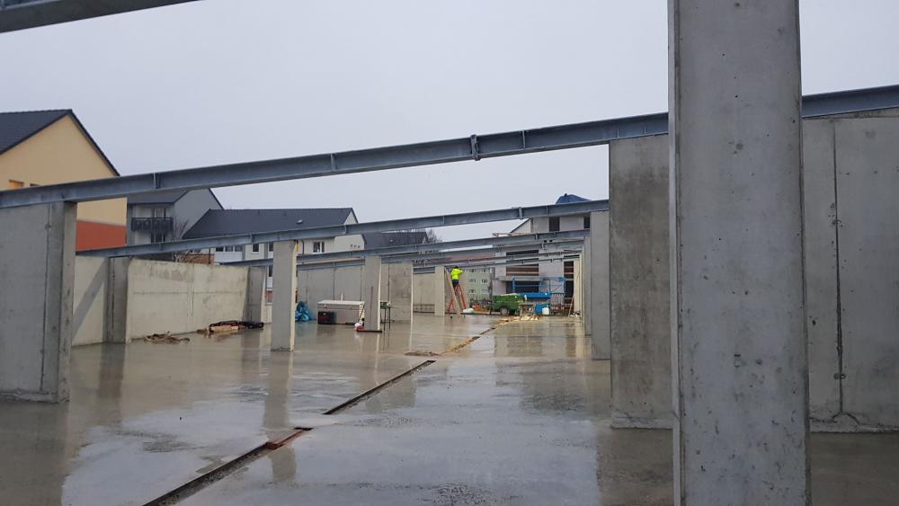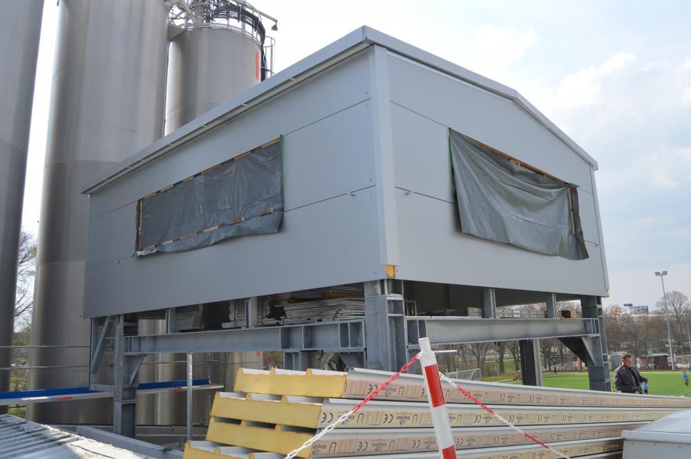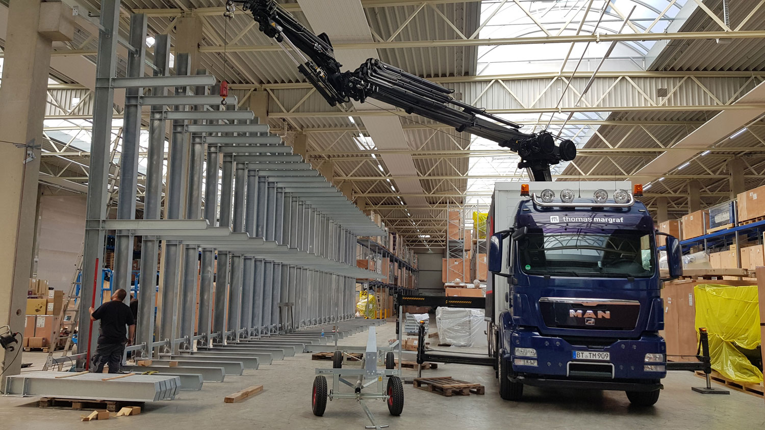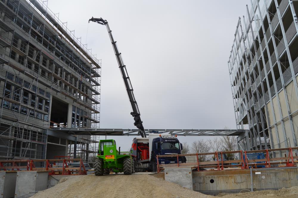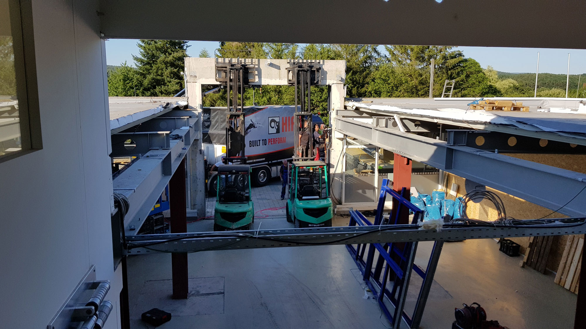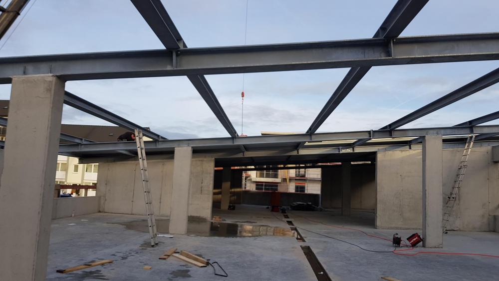Montage in der Produktionshalle bei laufendem Betrieb über einer bestehenden Anlage sowie Einheben der Überdachkonstruktion mit einem 220t Autokran mit unserem eigenen Montagepersonal.