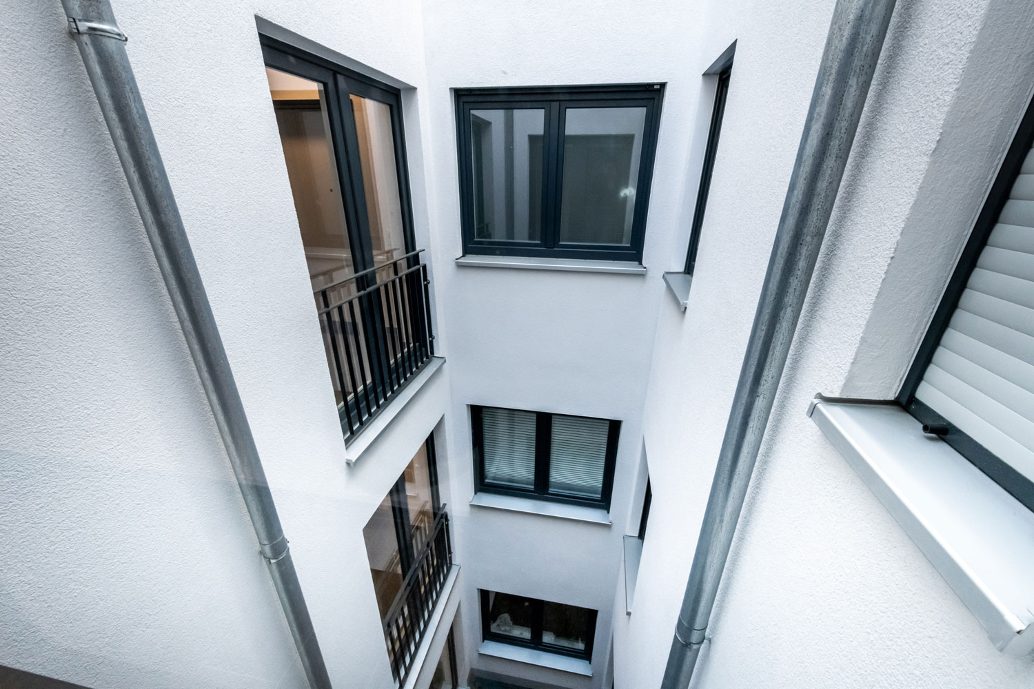 Für die neue Wohnanlage Living Isar am Mittleren Ring in München durften wir zwei Schallschutzwände zwischen den Gebäuden mit einer Abmessung (b x h) von ca. 10 x 20m herstellen. Diese bestehen aus einer Stahl-Pfosten-Riegel-Konstruktion sowie Vogelschutzglaselementen mit Glasfeld- größen von ca. 1500 x 3500mm. Die Stahl-Rechteckrohre