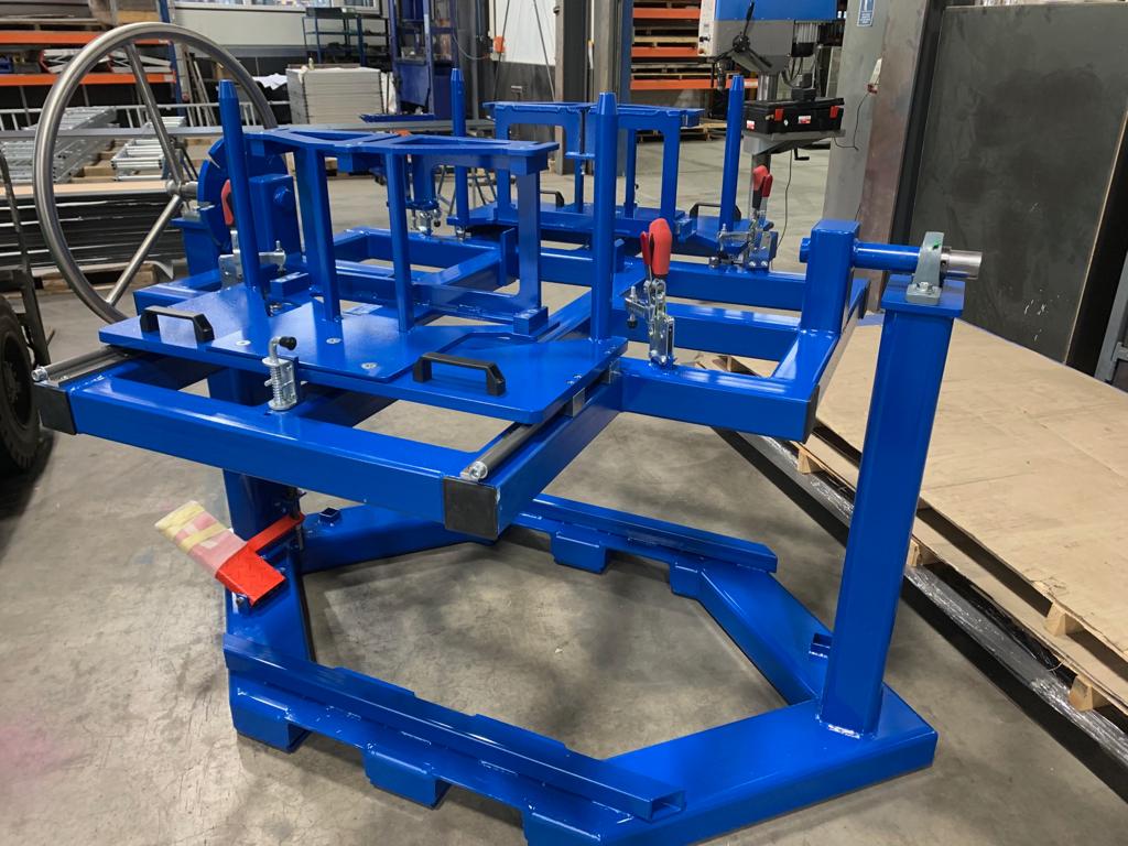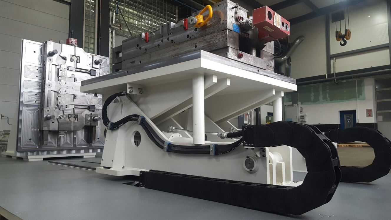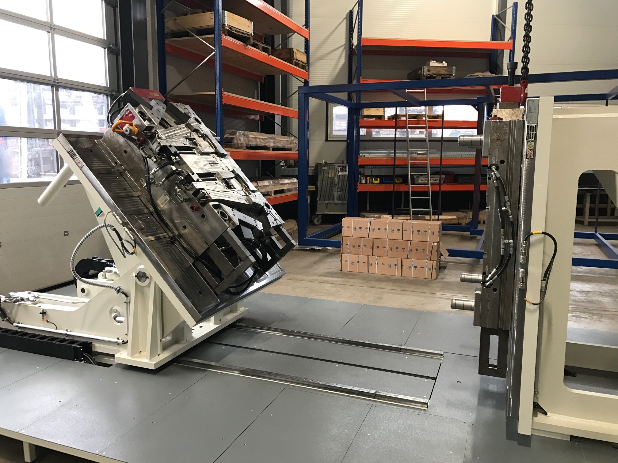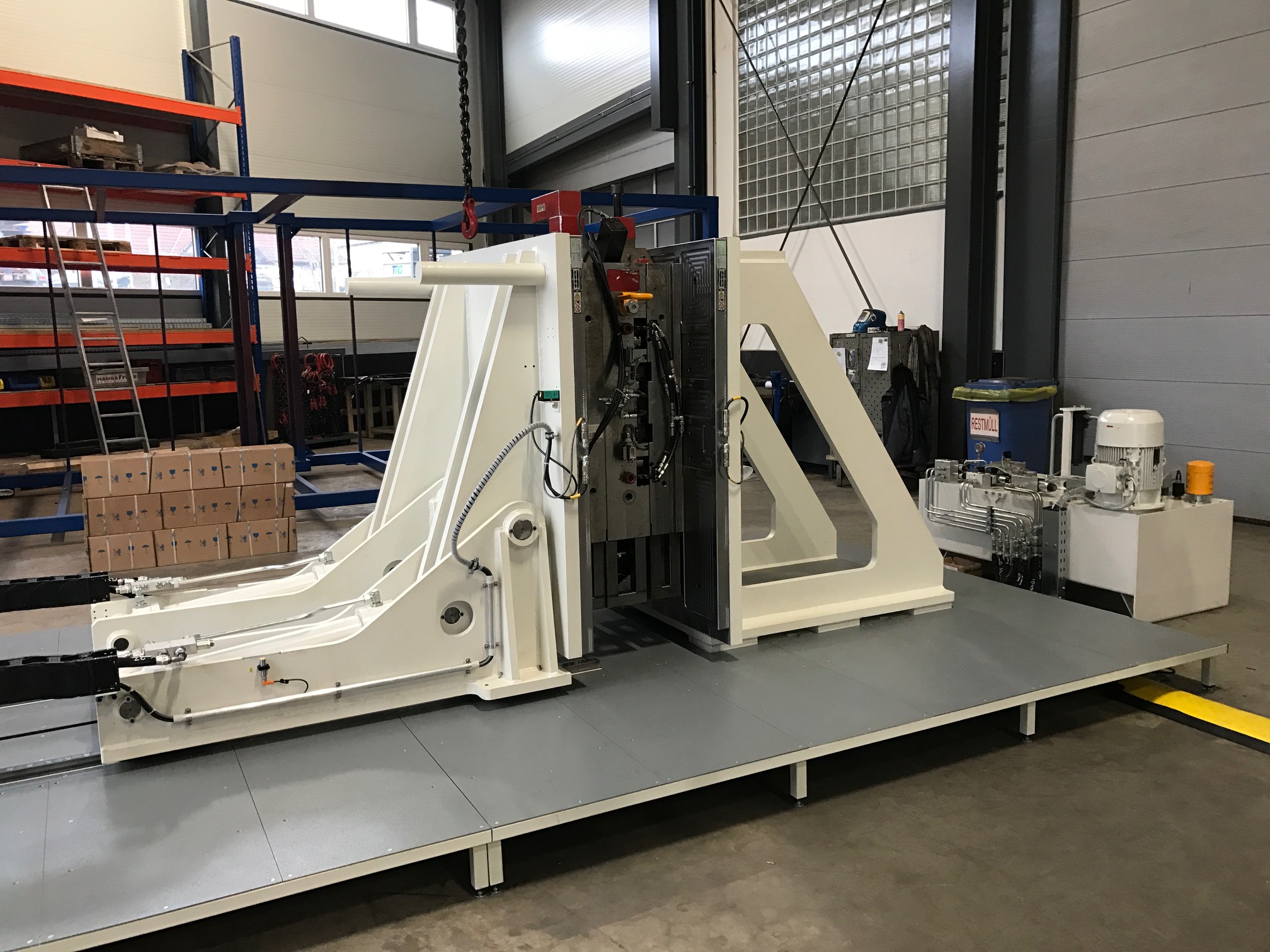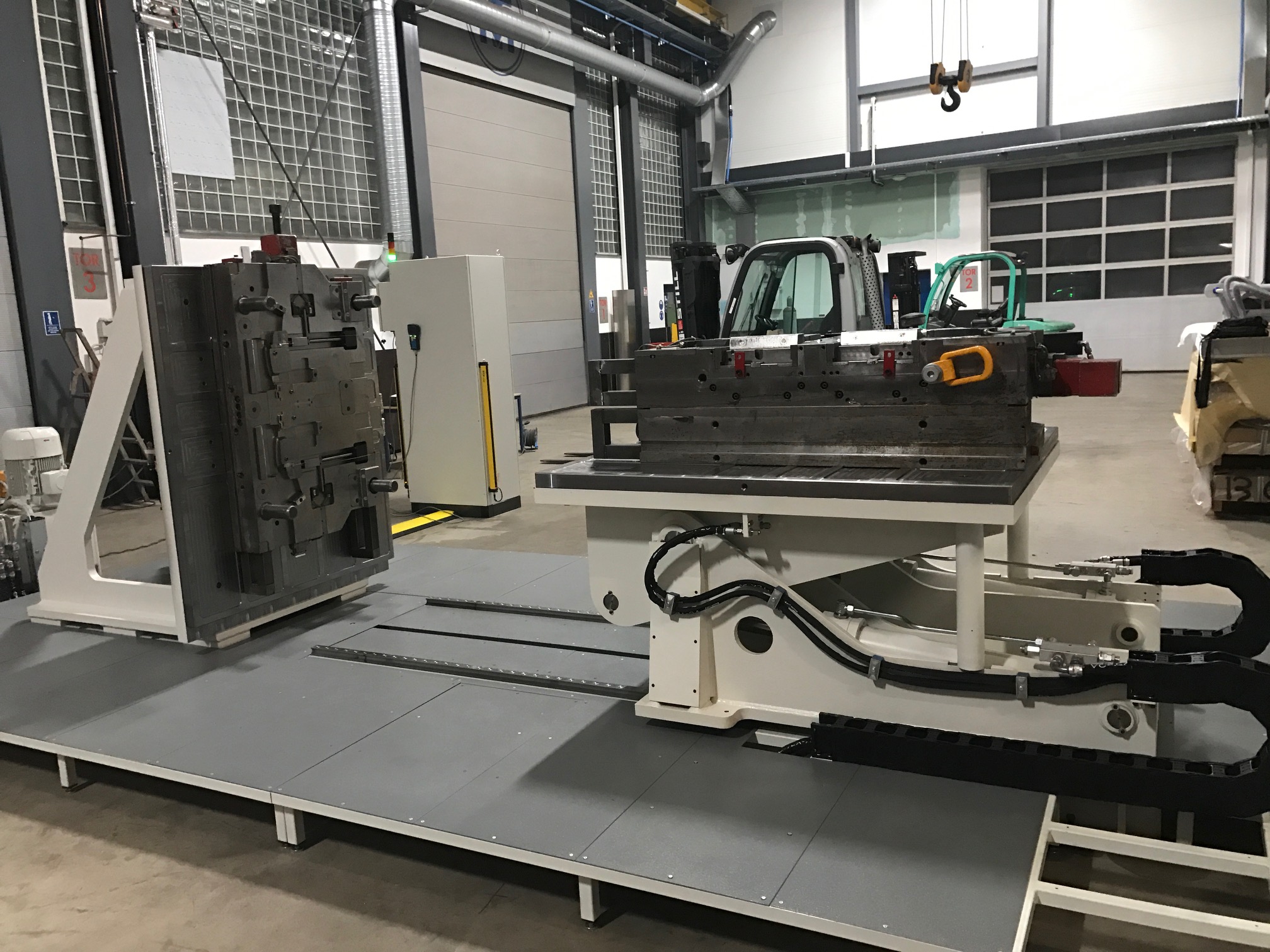 Sie wurde durch unser eigenes Montagepersonal vor Ort beim Endkunden im Westen Spaniens in enger Koordination mit dem kundenseitigen Aufbau der Spritzgußmaschine errichtet. Bei der statischen Auslegung waren u. a. die hohen dynamischen Kräfte des auf 4 Meter Höhe platzierten Handlingroboters zur Entnahme der Spritzgießteile zu berücksichtigen.