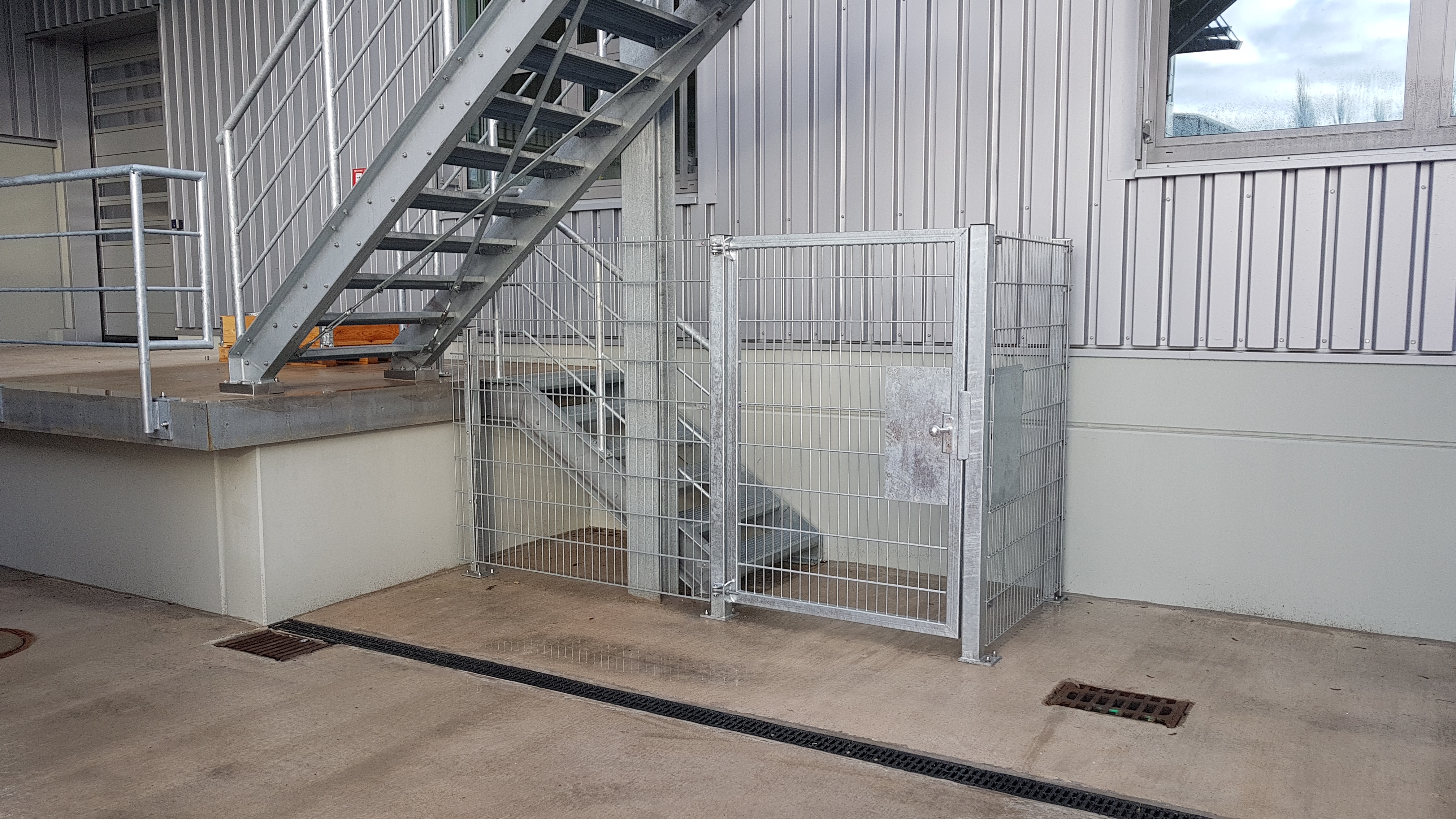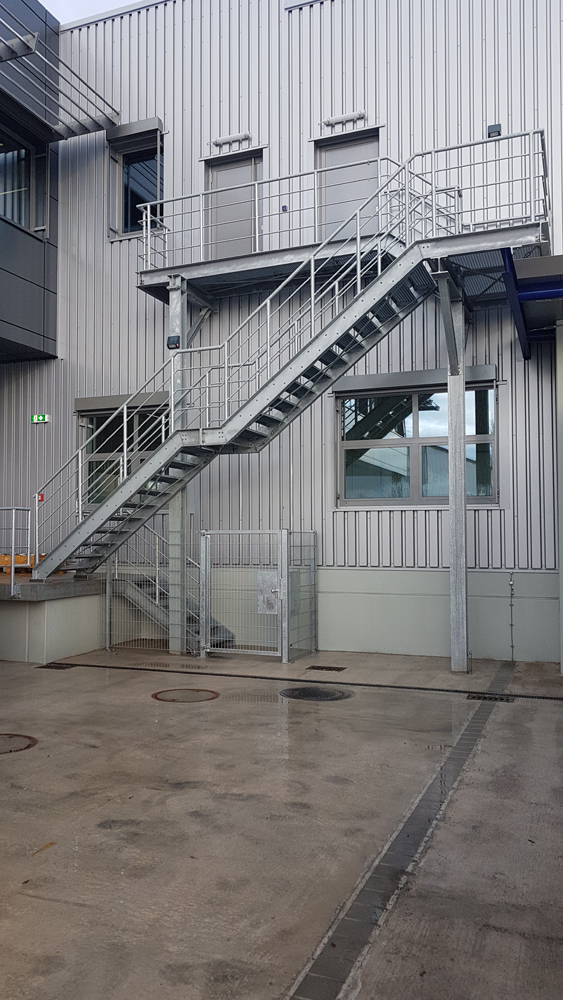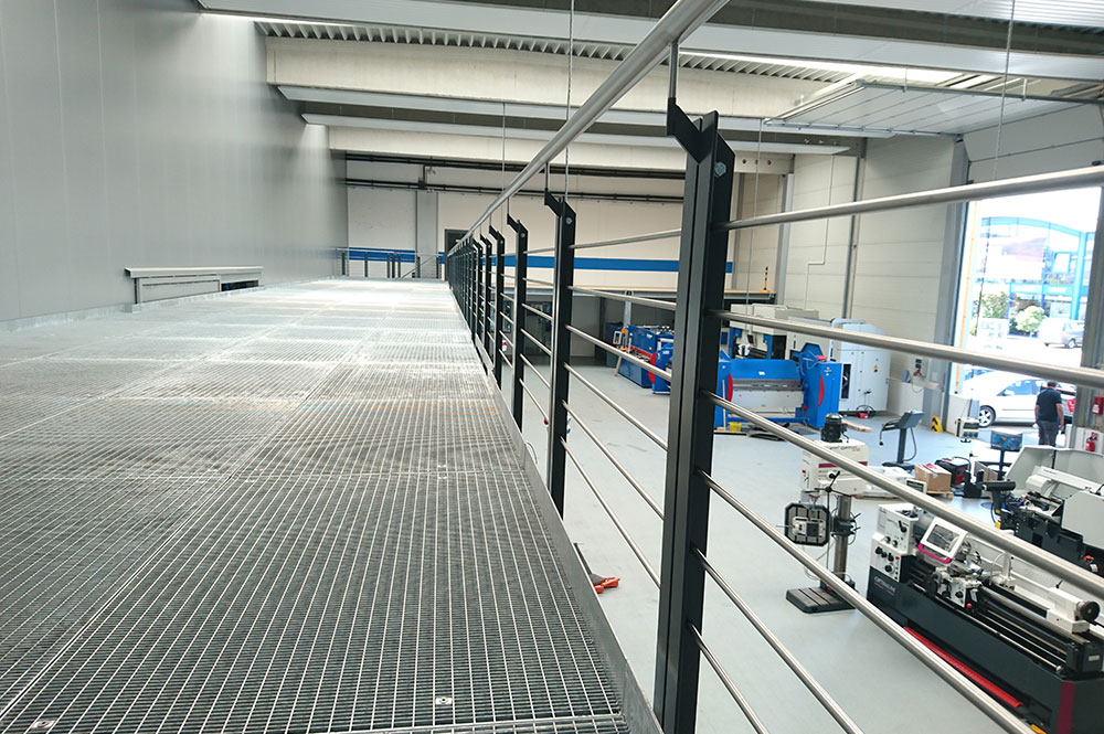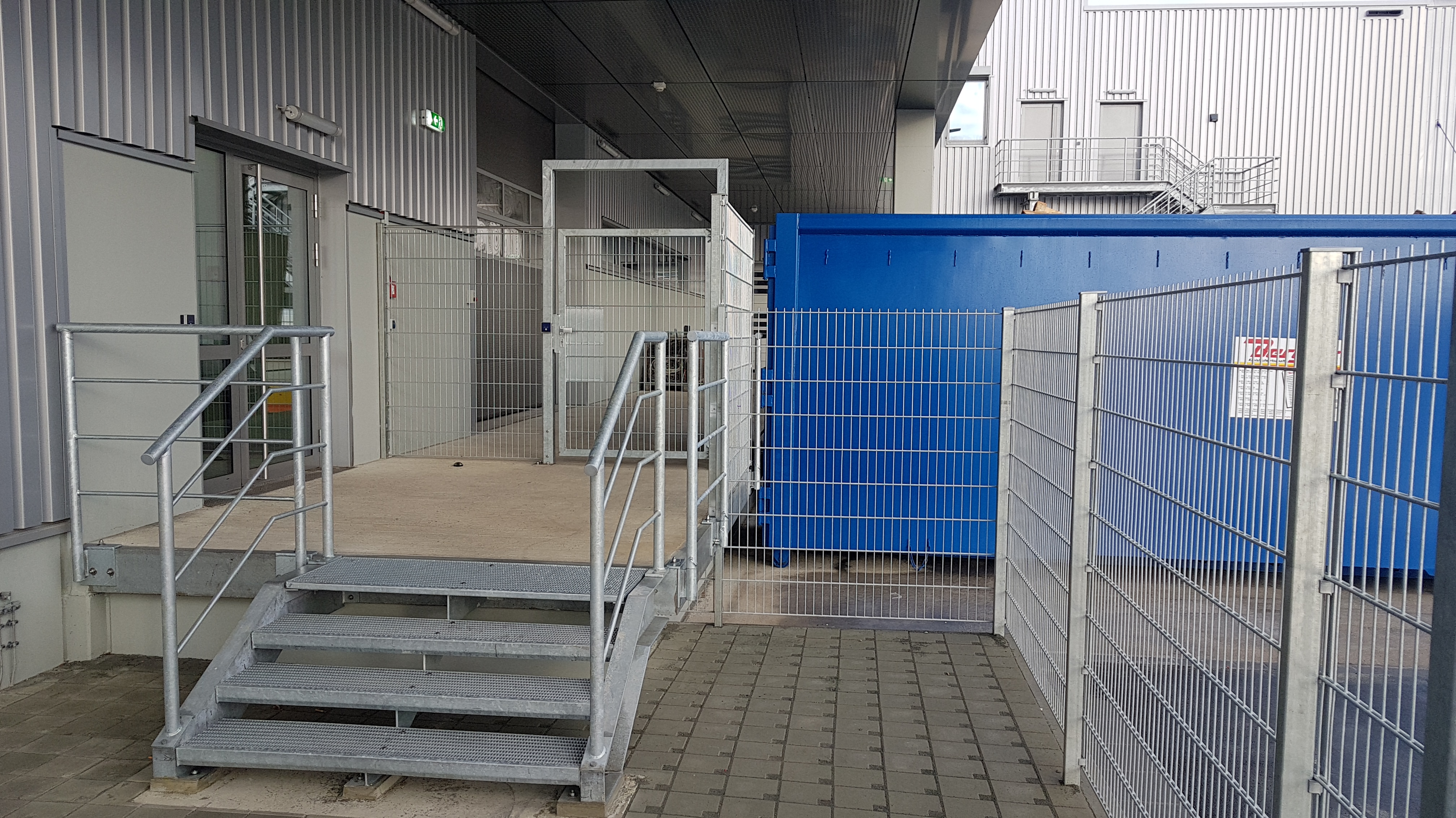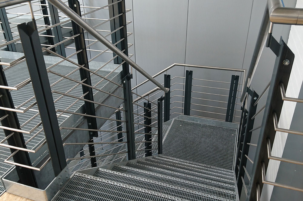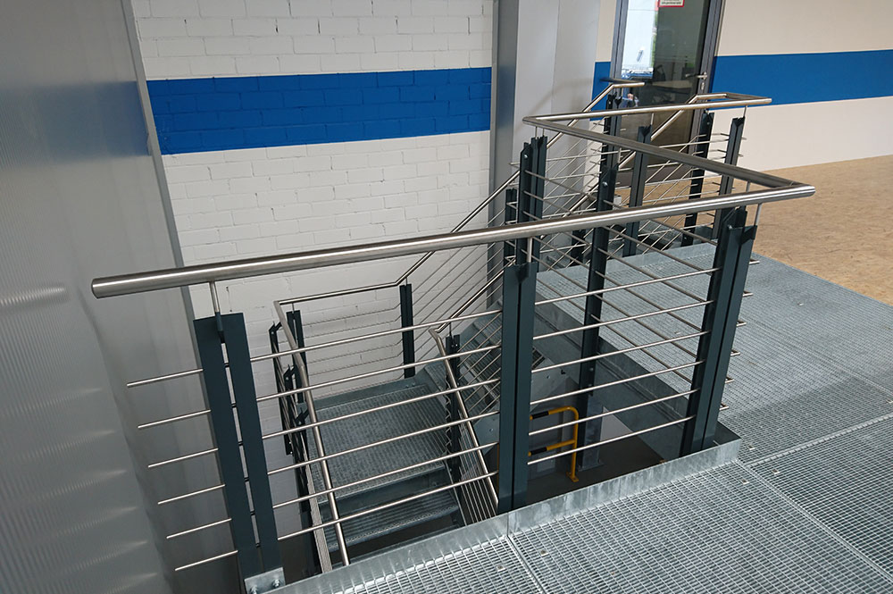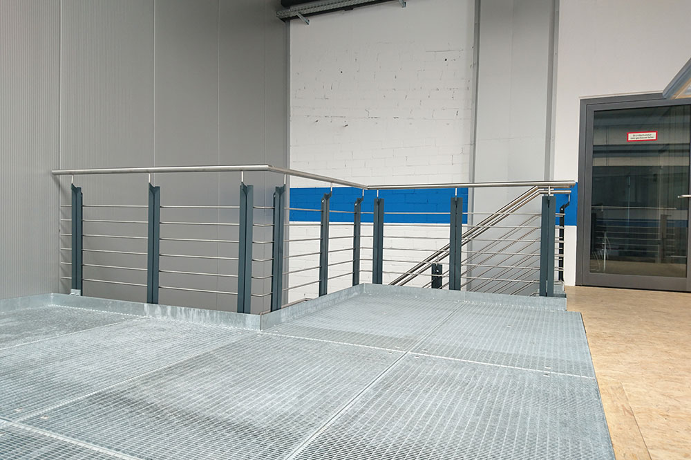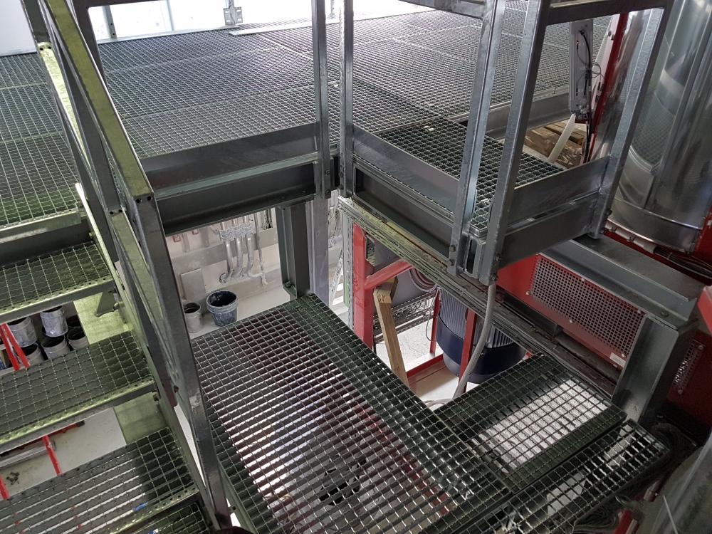 Anfertigung und Montage einer Stahlbühne mit Gitterrostbelag und Treppe als Erweiterung der