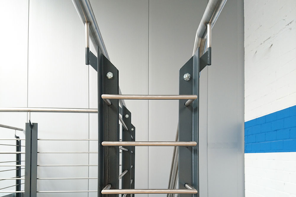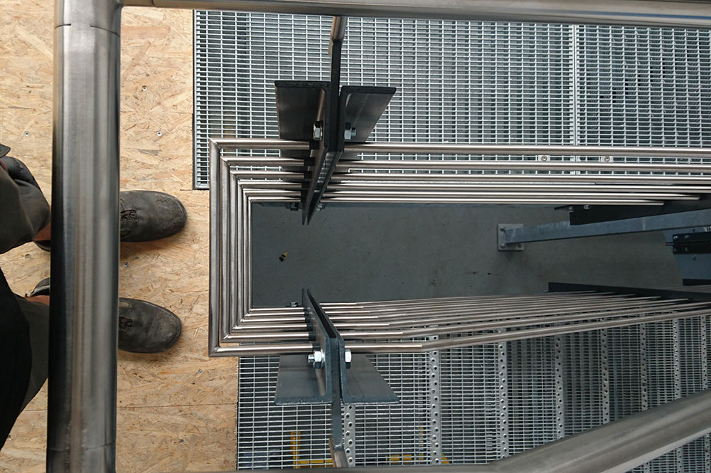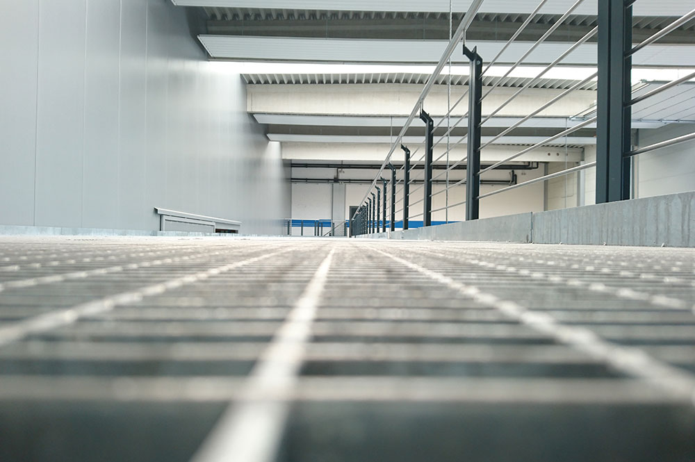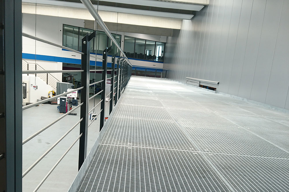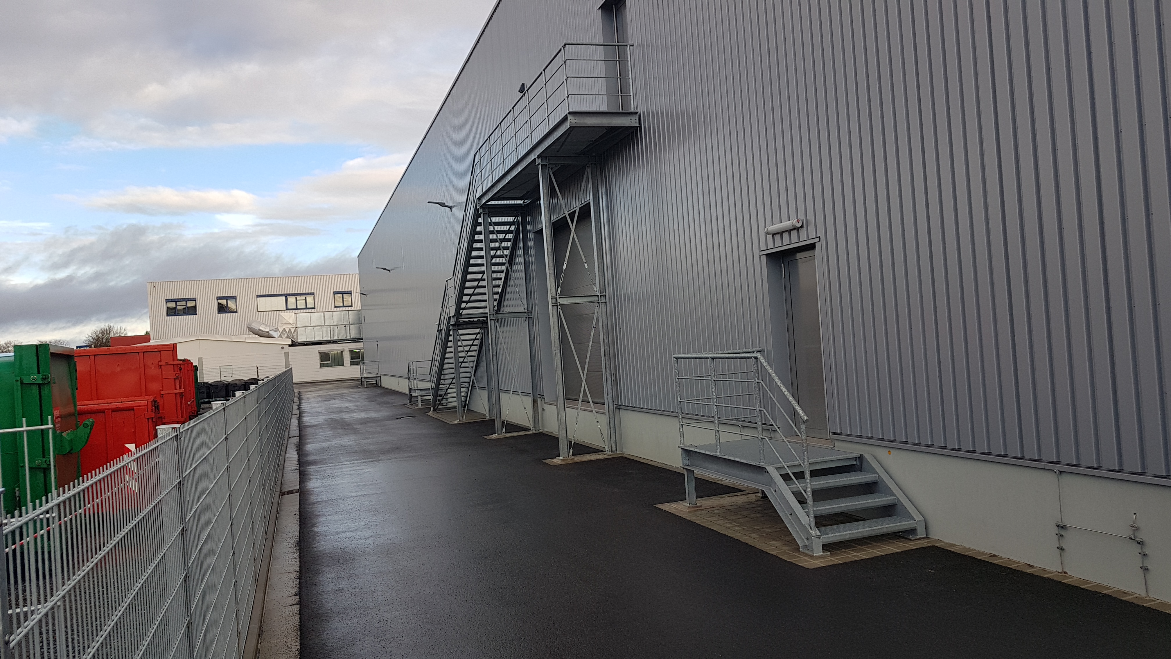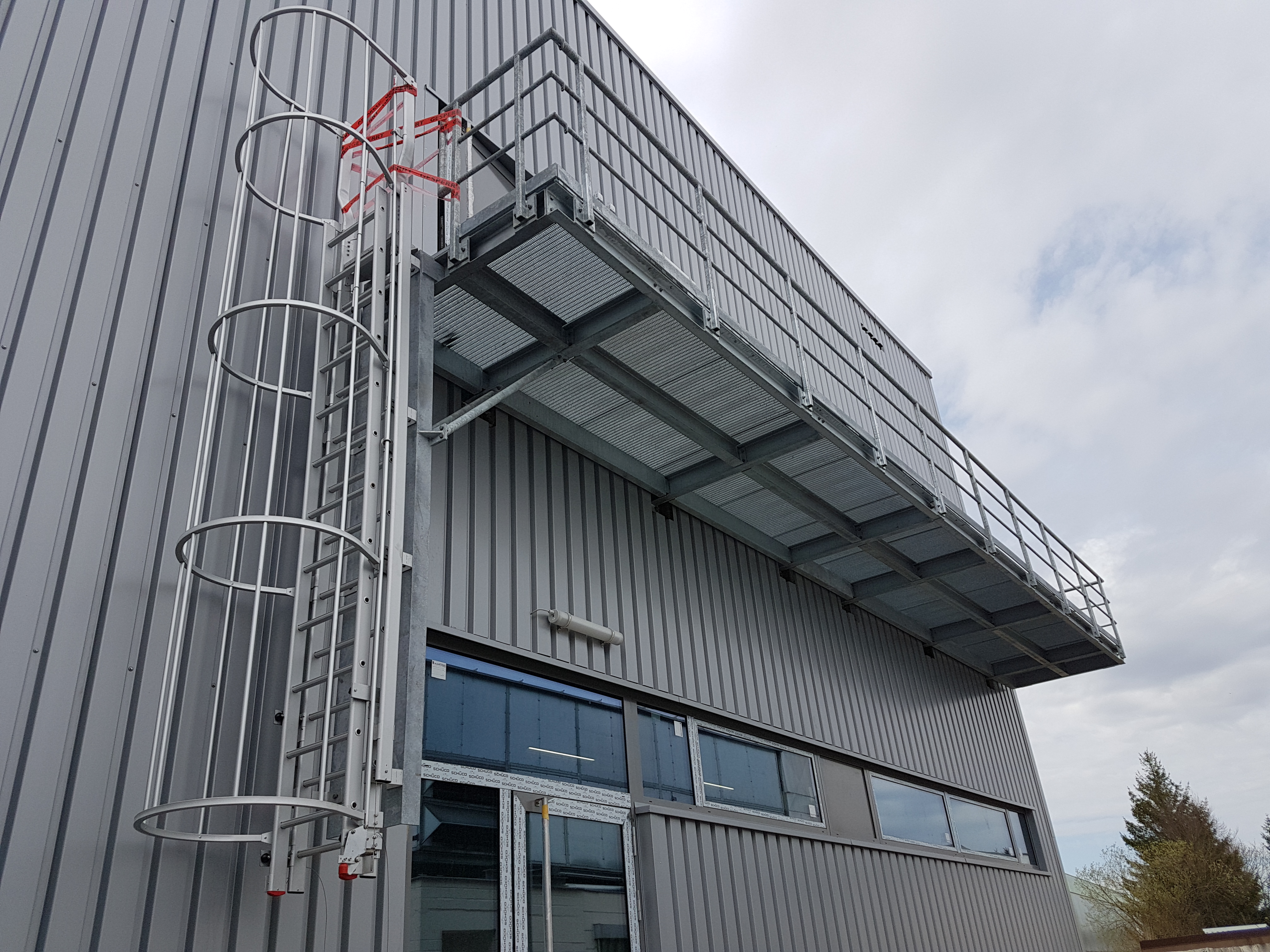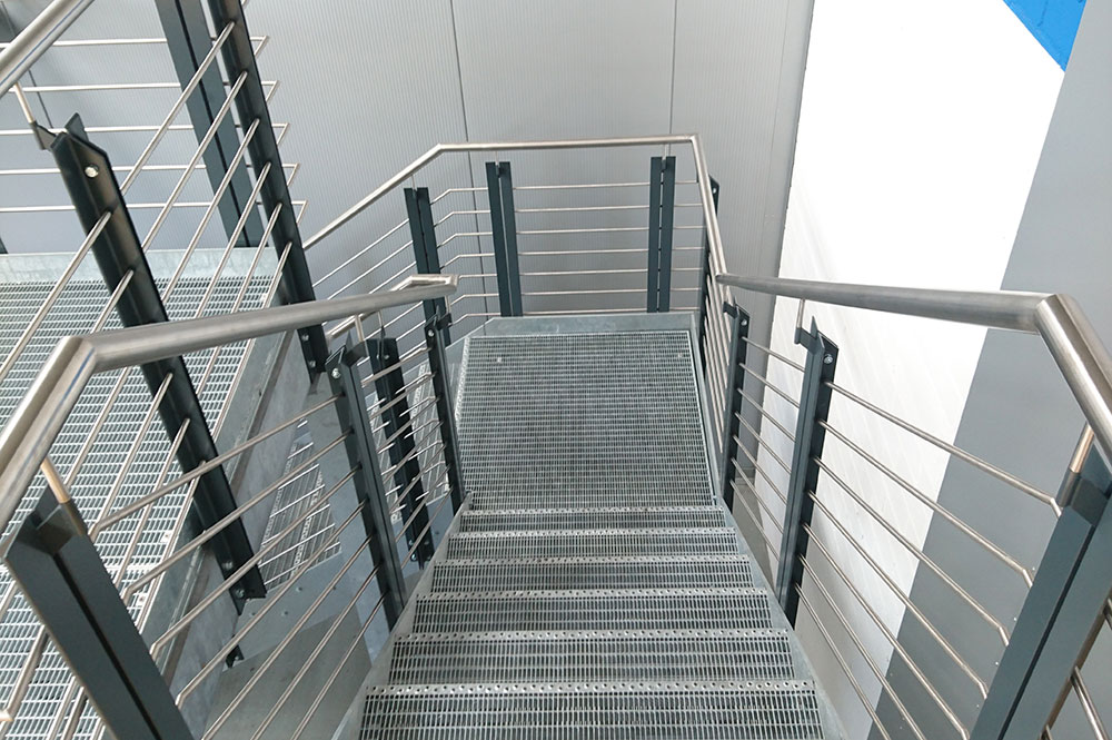 Anfertigung und Montage einer Stahlbühne mit Gitterrostbelag und Treppe als Erweiterung der